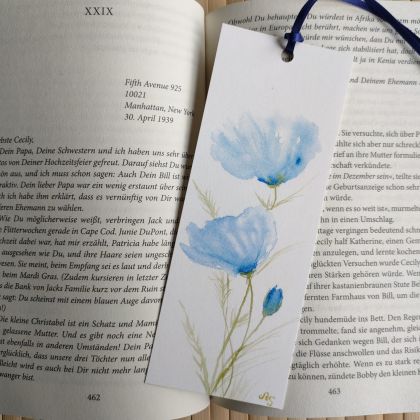 Lesezeichen, sowohl handgemalt als auch als Druck.